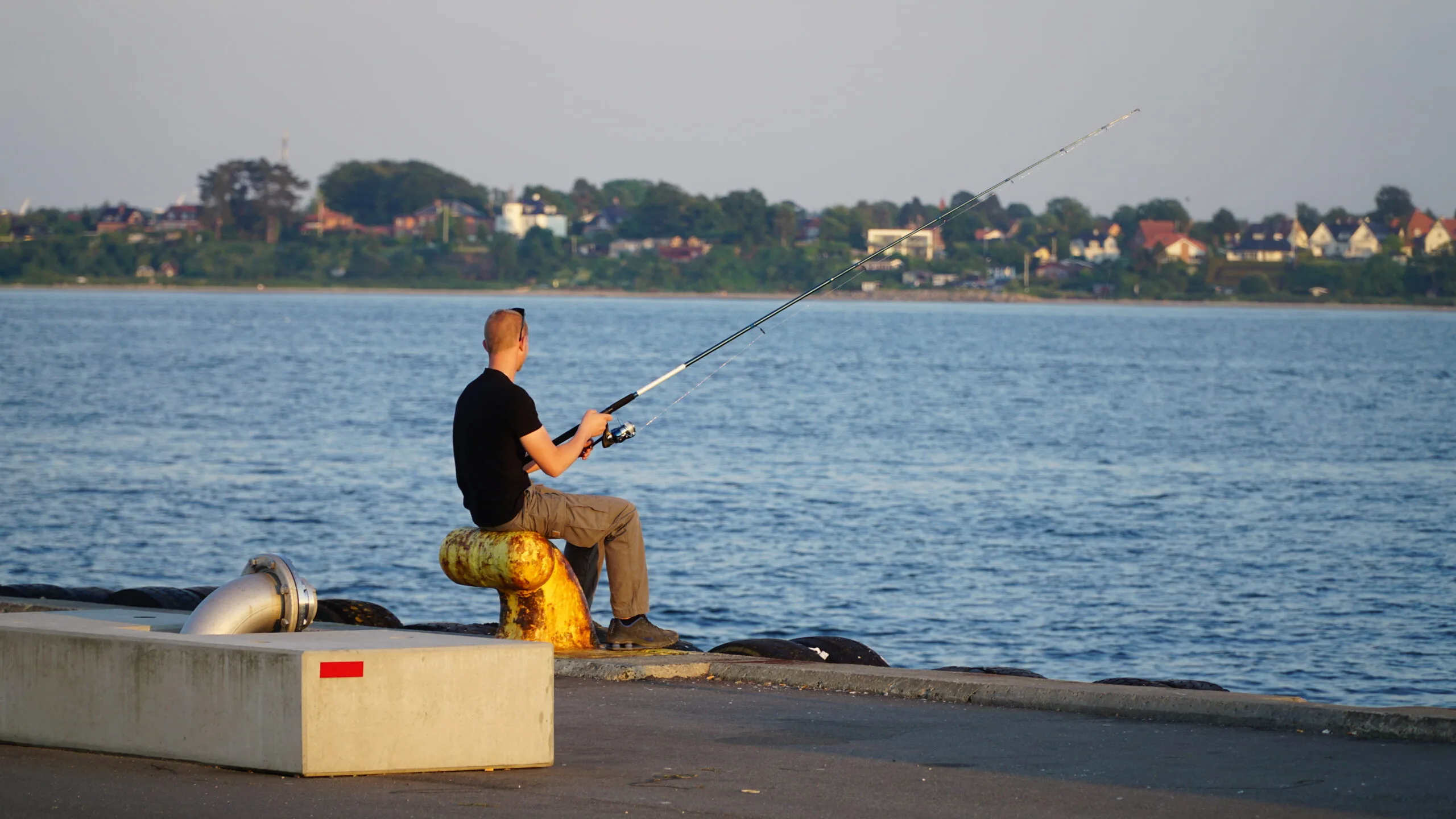 Fiske dreng på havnen
