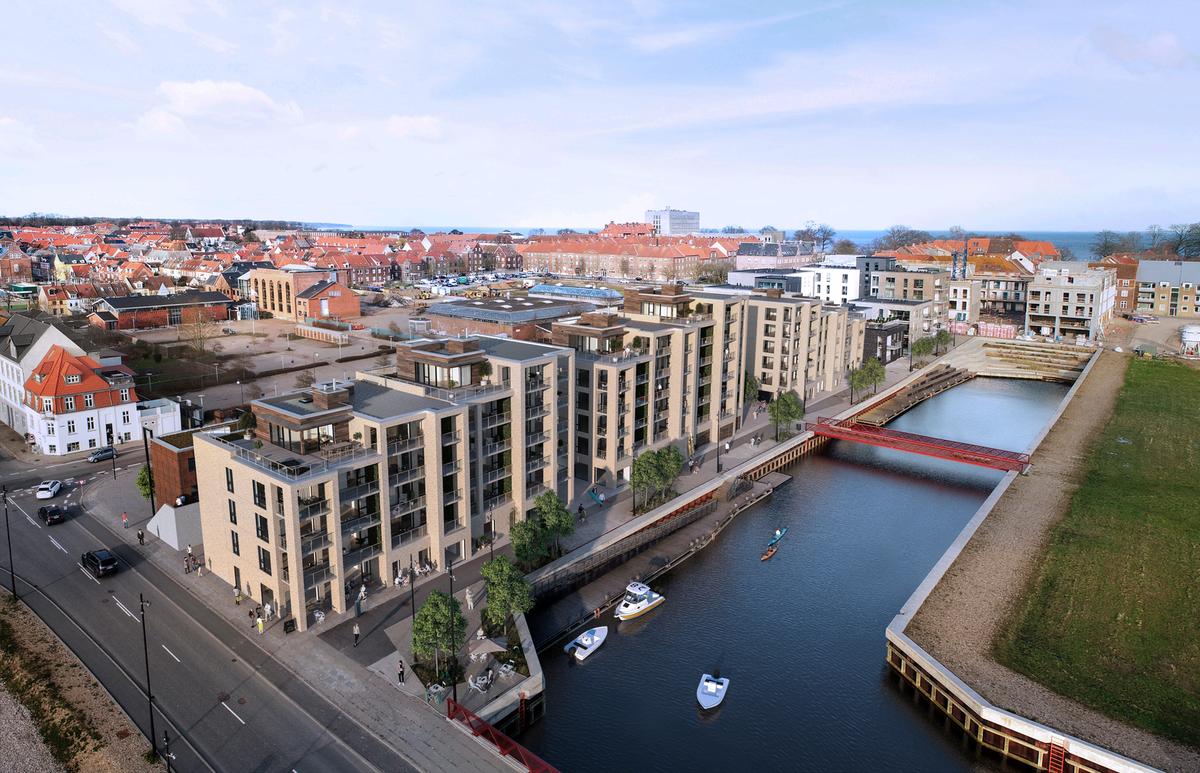 Visualisering af boligbyggeriet Promenaden i Kanalbyen i Fredericia.